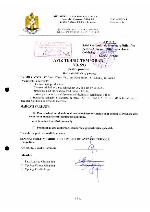 - Respirabilitate (presiune diferențială) < 40 [Pa/cm2]