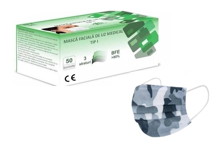 Masti medicale tip 1, 50 buc camuflaj Romania, Global