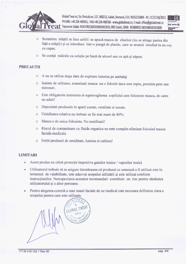 Performanta filtrului conform EN 14683+AC:2019 (tipul 2)