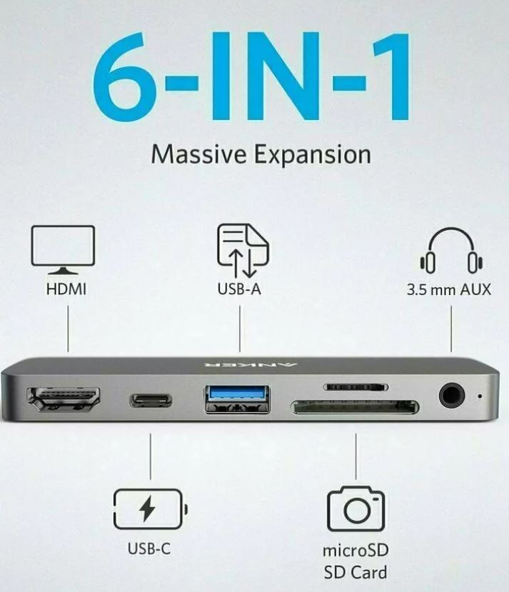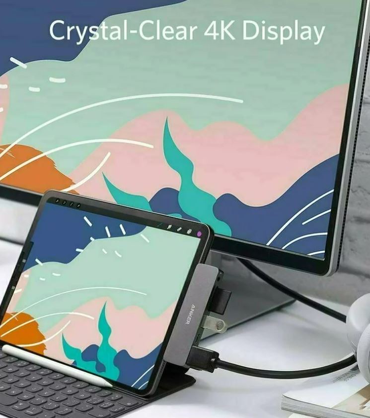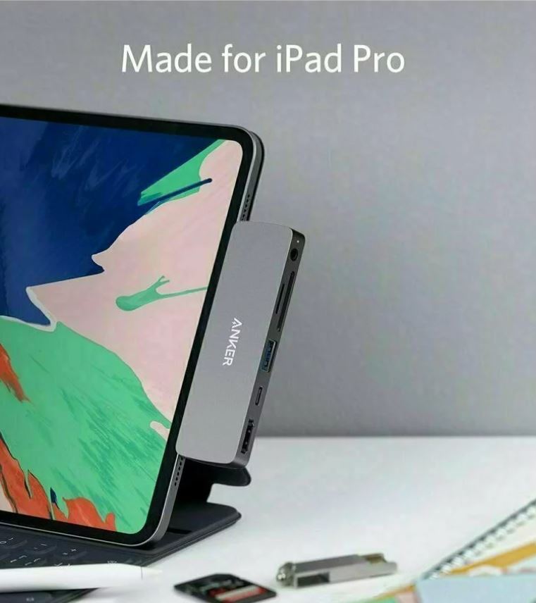 Media Hub Anker PowerExpand Direct pentru iPad Pro, 6-in-1, 60W Power Delivery, USB-C, 4K HDMI, Audio 3.5mm, USB 3.0, microSD