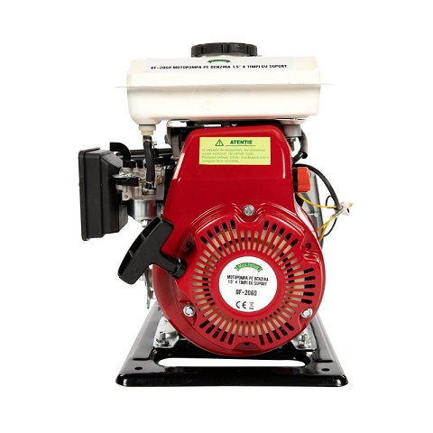 Motopompa pe benzina 1.5", 4 timpi cu suport, Micul Fermier GF-2060 este un produs robust, eficient si fiabil ce necesita o intretinere minimala, cu un consum redus de ulei si benzina. Constructiv acesta motopompa este actionata de un un motor pe benzina in patru timpi de tip OHV(racit cu aer si cu un singur cilindru, cu arbore orizontal) o pompa de absorbtie a apei si un sorb.