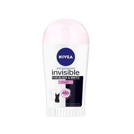NIVEA Invisible for Black & White Clear Deodorant Stick protectie anti perspiranta timp de 48 ore fara urme albe pe hainele negre si fara pete galbene pe hainele albe, 40ml