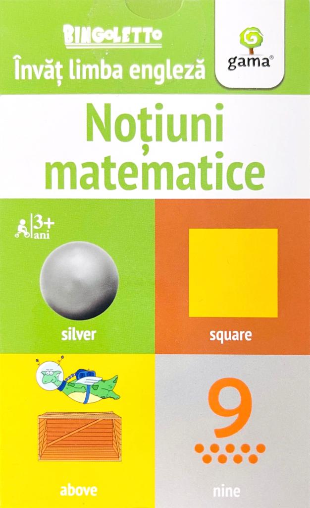 Bingoletto. Notiuni matematice reprezinta un sistem inedit de a invata limba engleza, inspirat de popularul joc de bingo. Cu ajutorul acestei metode, copilul va invata cu usurinta denumirile numerelor, culorilor, formelor si pozitiilor in spatiu, imbogatindu-si astfel vocabularul.