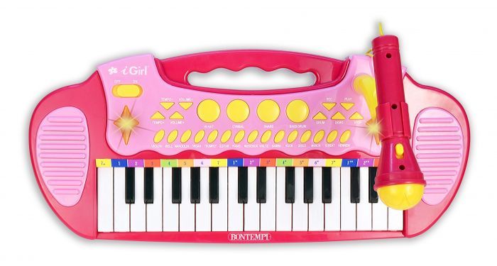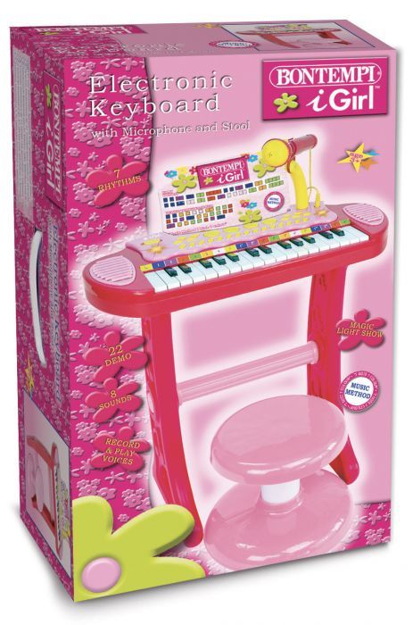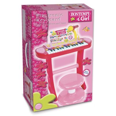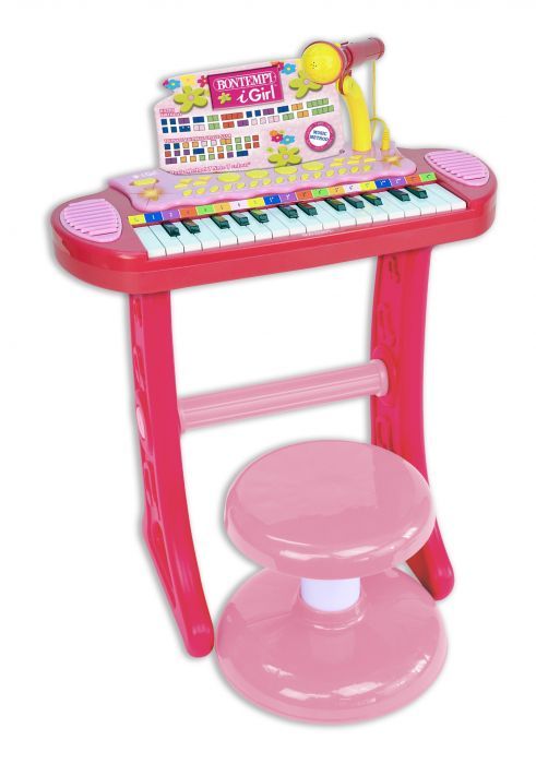 Orga electronica, cu 31 de clape, microfon cu stativ si scaun, roz, Bontempi