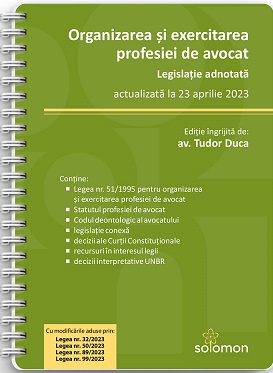 Legea nr. 51/1995 pentru organizarea si exercitarea profesiei de avocat, cu ultimele modificari aduse prin: Legea nr. 32/2023, Legea nr. 50/2023, Legea. nr. 89/2023, Legea nr. 99/2023