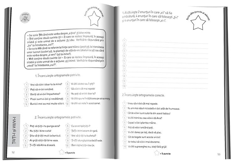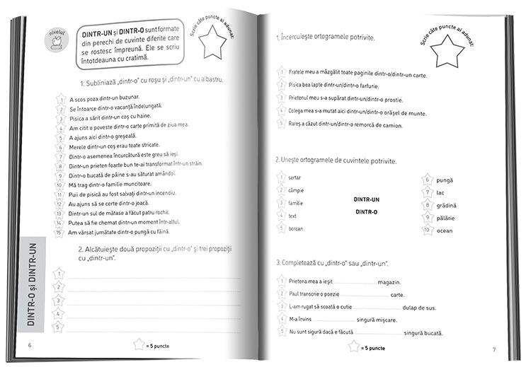 In Ortograme pentru clasele a II-a si a III-a se invata ortograme cele mai des gresite in scriere intr-un intr-o dintr-un dintr-o printr-un printr-o sa s-a sau s-au la l-a ia i-a iau i-au nea ne-a neam ne-am nai n-ai ai a-i sai sa-i iar i-ar cea ce-a cei ce-i ia-ti i-ati cel ce-l ceai ce-ai mie mi-e tie ti-e cam c-am etc. Caietul de lucru contine stickere aurii in forma de stelute pentru a decora Diploma pentru cel mai perseverent elev inclusa. De ce sa alegi LexicPRO Colectia ajuta orice elev sa-si atinga POTENTIALUL DE INVATARE Se bazeaza pe dezvoltarea si imbogatirea cunostintelor de limba romana printr-o METODA SISTEMATICA Dezvolta COMPETENTELE DE SCRIERE CORECTA si de INTELEGERE A SENSULUI cuvintelor Copilul poate sa rezolve singur exercitiile si sa se autoverifice iar aceasta independenta il va motiva SA INVETE SINGURSpecificatii