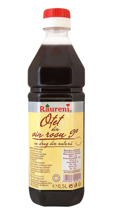 Produs obtinut din vin rosu prin fermentatie acetica. Aciditate: 90 mg/100l ml.