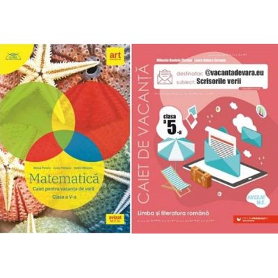 1. Matematica. Caiet pentru vacanta de vara. Clasa a 5-a - Marius Perianu Prezentul auxiliar a fost avizat de Ministerul Educatiei Nationale prin Ordinul nr 3530 din 04. 04. 2018 si se regaseste la pozitia nr. 248 din anexa Ordinului. Aceasta lucrare a fost realizata in conformitate cu programa scolara in vigoare aprobata prin Ordinul Ministrului Educatiei Cercetarii si Inovarii nr. 3393 28. 02. 2017 2. vacantadevara. eu. Scrisorile verii. Caiet de vacanta pentru limba si literatura romana. Clasa a 5-a - Mihaela Daniela Cirstea Avizat M. E. N. conform O. M. nr. 3530 04. 04. 2018 Scrisorile verii o altfel de vacanta Dragi prieteni Cartea pe care v-o propunem se doreste a fi o invitatie aceea de a transforma timpul vacantei intr-unul al jocului creativ si al placerii de a descoperi lucruri utile. Copii la fel ca tine se intalnesc in paginile cartii cu ajutorul artei de a conversa si a coresponda. Sub forma unor scrisori prin e-mail sau pe hartie acestia fac schimb de informatii se provoaca unii pe altii la dialog la joc la activitati numai bune sa alunge monotonia si plictiseala. Te provocam si noi pe tine sa ti-i faci prieteni pe copiii din carte si pe istetul ghid Lecturici Impreuna cu acestia te vei simti multumit si bucuros cand vei deslusi tainele literaturii in rubrica Descoperim textul Alaturi de ei creativitatea si imaginatia ta vor fi de neinvins in rezolvarea activitatilor din rubrica Mai aproape de text Iar in momentul in care vei constata ca la fiecare Scrisoare din carte punctajul obtinut pentru activitatea ta este unul maxim vei fi foarte mandru de performantele tale. AutoriiSpecificatii