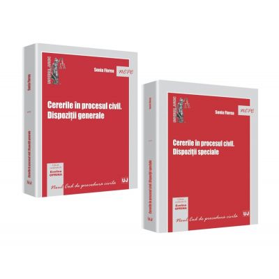 Pachetul contine 1. Cererile in procesul civil. Dispozitii generale Instanta civila nu se investeste de regula din oficiu. Procesul civil incepe prin inregistrarea unei cereri in justitie facuta de cel care pretinde apararea drepturilor si intereselor sale sau care urmareste solutionarea unei situatii juridice. Institutia cererilor in justitie este esentiala intr-un proces civil deoarece de principiu numai in raport de continutul cererii formulate de cel interesat instanta este investita cu solutionarea unui litigiu se poate stabili cadrul procesual dedus judecatii si implicit limitele acesteia se determina competenta instantei caile de atac care pot fi formulate impotriva hotararii judecatoresti pronuntate etc. LucrareaCererile in procesul civil analizeaza cerintele intrinseci si extrinseci ale cererilor formulate in fata primei instante si in caile de atac cereri clasificate in noul Cod de procedura civila ca principale incidentale accesorii si aditionale procedura de verificare si regularizare a acestora precum si sanctiunile procedurale aplicabile pentru nerespectarea cerintelor impuse de lege. Sunt avute de asemenea in vedere noutatile aduse prin reglementarile noului Cod de procedura civila si solutiile normative ale Codului de procedura civila din 1865 pastrate de legiuitor. 2. Cererile in procesul civil. Dispozitii speciale Noul Cod de procedura civila raspunde necesitatilor vietii socio-economice contemporane si reglementeaza noi institutii procedurale care asigura solutionarea conflictelor juridice prin parcurgerea unor forme simplificate adaptate unor nevoi pragmatice precum procedura ordonantei de plata procedura cu privire la cererile de valoare redusa procedura evacuarii din imobilele folosite sau ocupate fara drept procedura de instituire a masurilor provizorii in materia drepturilor de proprietate intelectuala etc. Lucrarea Cererile in procesul civil. Dispozitii speciale analizeaza dintr-o perspectiva preponderent practica aspectele de noutate ale solutiilor adoptate de legiuitor dificultatile care pot aparea in interpretarea si aplicarea dispozitiilor speciale problemele privind verificarea si regularizarea cererilor sanctiunile procedurale aplicabile pentru nerespectarea cerintelor impuse de lege.Specificatii
