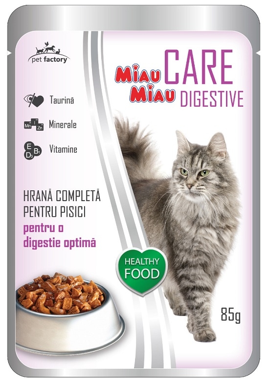 Pachet Hrana Umeda pentru Pisici, cu miel,12 plicuri x 85 g, MIAU MIAU CARE DIGESTIVE