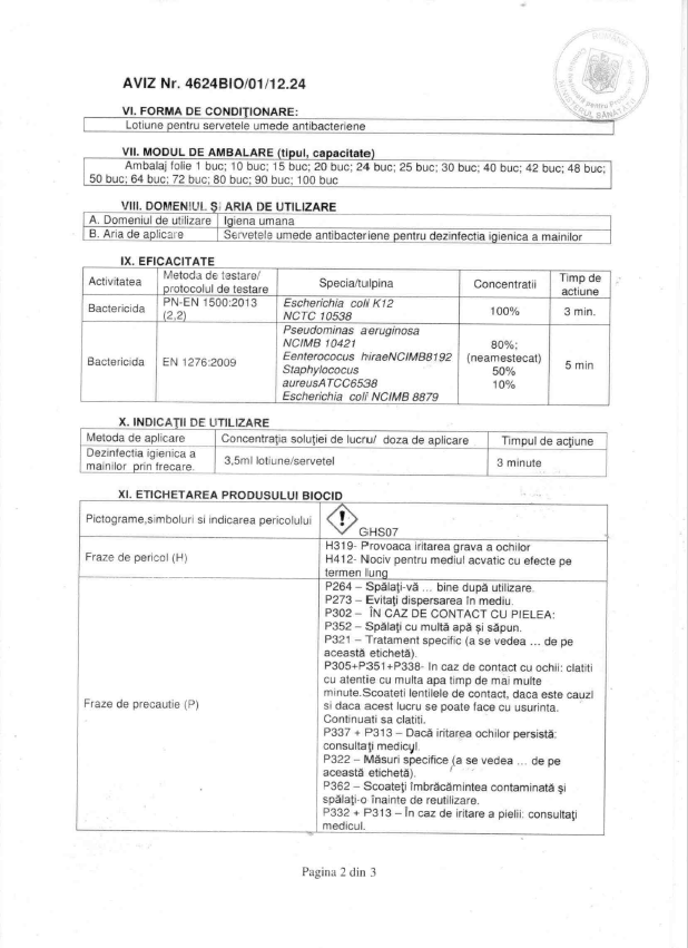 | Tip | Servetele umede |
