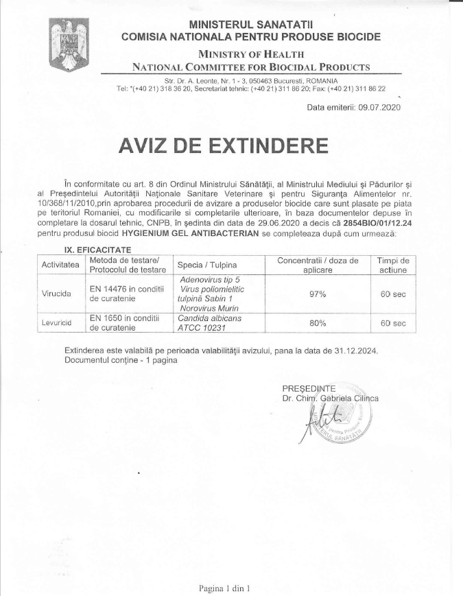 Pachet Hygienium VIRUCID Gel dezinfectant maini 50 ml + Servetele Umede dezinfectante 48 buc, avizat Ministerul Sanatatii