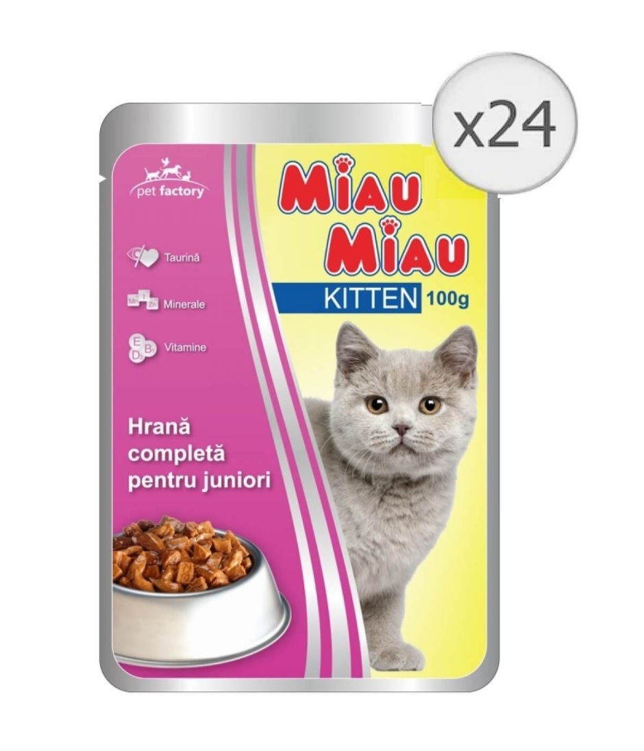 Pachet Miau Miau Kitten Mancare umeda pisici, 100 g x 24 buc