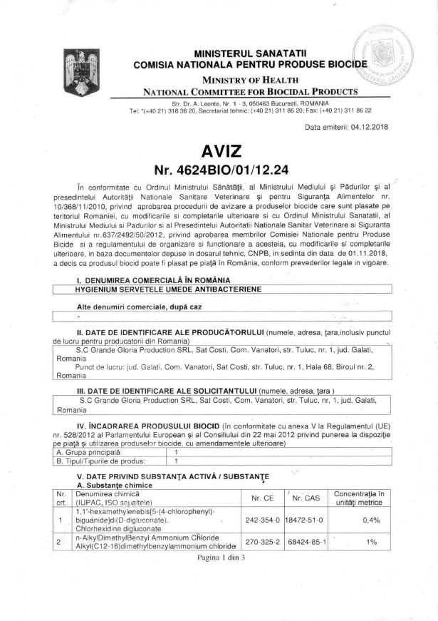 TP1: Produsele din această categorie sunt produse biocide utilizate pentru igiena umană, aplicate pe sau care intră în contact cu pielea umană sau cu pielea capului în scopul principal de a dezinfecta pielea sau pielea capului.