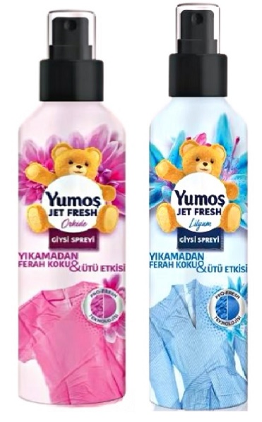 Noile sprayuri pentru imbracaminte Yumos Jet - improspateaza hainele care nu sunt suficient de murdare pentru a fi spalate din nou, fara a le spala, si le reinnoieste mirosul. Mai mult, au si efect de calcat prin eliminarea cutelor. Sunt foarte practic de utilizat: Asezati imbracamintea pe o suprafata orizontala, apllicati produsul in special pe cute, neteziti cutele cu mana si atarnati haina timp de 15 minute! Si tinuta ta este gata de a fi purtata din nou!Specificatii