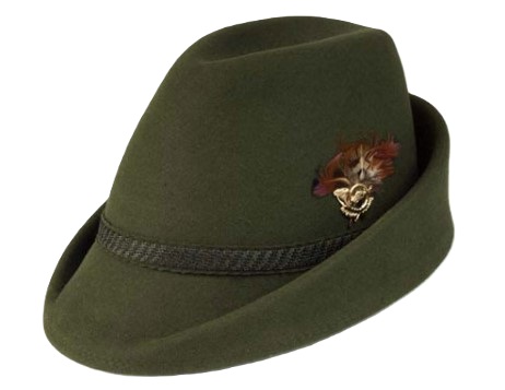 Pălărie bavareză pentru vânătoare, din fetru, cu ornament şi până.