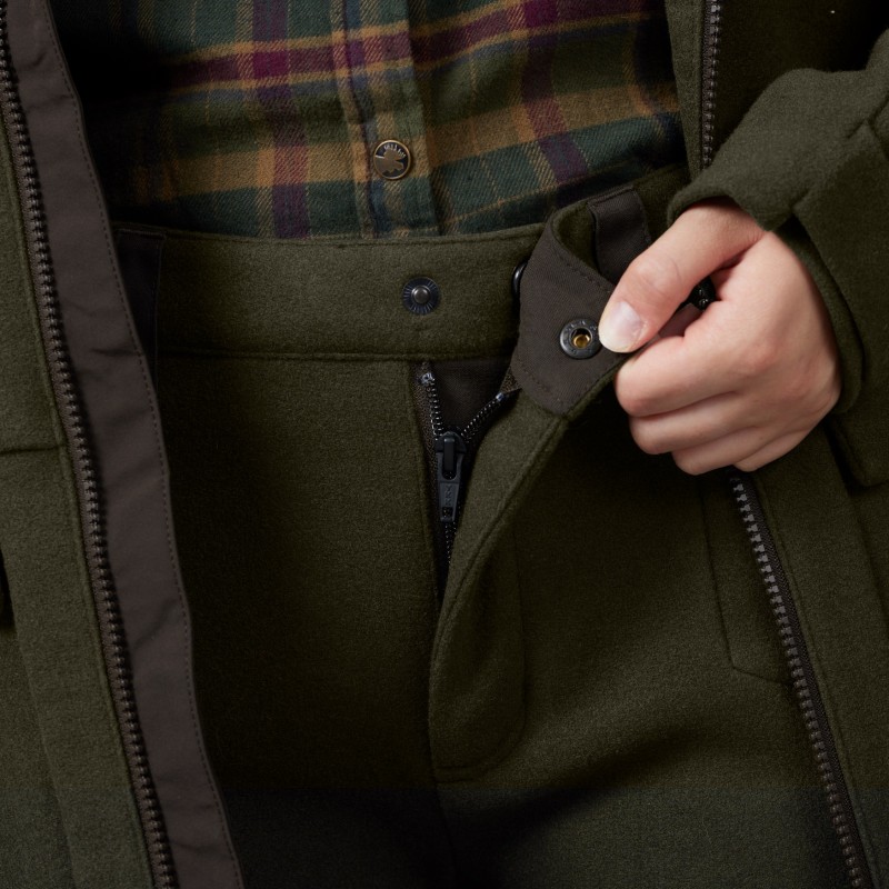 Pantalonii de dama Metso Hybrid in culoarea eleganta de vanatoare Willow Green sunt confectionati dintr-o combinatie de calitate de 70% poliester si 30% lana, care este tratata suplimentar cu tehnologia Bionic Finish ECO®. Datorita acesteia, pantalonii in sine sunt mai rezistenti la apa si murdarie.