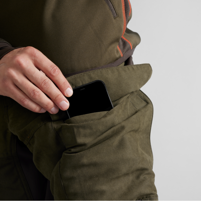 Buzunarul din dreapta al acestor pantaloni de vanatoare contine un suport pentru patru cartuse suplimentare, iar in buzunarul din stanga este un buzunar mic pentru a va pastra telefonul mobil in siguranta atunci cand sunteti in miscare.