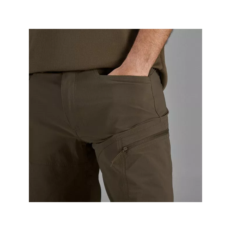 Pantalonii Trail sunt cei mai usori si mai aerisiti pantaloni de la Harkila. Fabricati dintr-o tesatura respiranta, care elimina transpiratia, acestia sunt alegerea ideala pentru vanatoare si trekking.