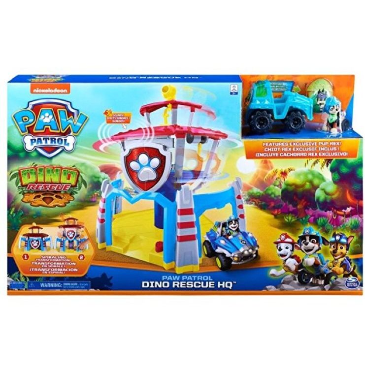Creati-va propriile misiuni de salvare a dinozaurilor incitante cu Sediul central Salvarea lui Dino Patrula Catelusilor! Prevazut cu sunete si o transformare in spirala in modul turn, acest set de joc uimitor seamana cu sediul de inalta tehnologie din emisiune! Sediul central Salvarea lui Dino are tot ce va trebuie pentru misiunile voastre, inclusiv o figurina Rex exclusiva si vehiculul, plus o mini-figurina dinozaur misterioasa. Scoateti din cutie figurina misterioasa pentru a descoperi un dinozaur colorat pe care sa il folositi in toate aventurile voastre de salvare! Parcati vehiculul lui Rex la baza sediului central si puneti-l pe Rex in varful cautarii. Apoi, transformati setul de joc din dom in turn, apasand pe un buton - partea de sus se ridica si se roteste, ridicandu-se in modul turn, exact ca in emisiune! Cu un periscop functional in partea de sus a turnului, voi si Rex aveti punctul de supraveghere ideal pentru a detecta dinozaurii care au probleme! Apoi, activati efectele sonore ale Sediului central Salvarea lui Dino apasand butonul din Laboratorul lui Rex! Cand a sosit momentul sa salvati un prieten dinozaur care este in pericol, atasati un carlig pe rucsacul lui Rex pentru a-l cobori rapid in actiune! Pentru mai multa distractie de dimensiunea dinozaurilor, adaugati toate seturile Catelul salvator Dino si Dino (fiecare vandut separat) la colectie. Jucati propriile misiuni cu dinozauri din nou si din nou cu Sediul central Salvarea lui Dino Patrula Catelusilor! Include: 1 Sediu central Salvarea lui Dino, 1 figurina, 1 vehicul, 1 figurina dinozaur misterioasa, 1 fisa de instructiuni.