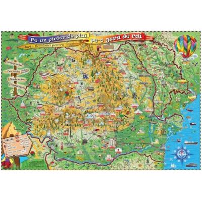 Pe-un picior de plai, pe-o gura de rai, 1400x1000mm - Harta Romaniei pentru copii, fara sipci (GHPLAI-140-L)