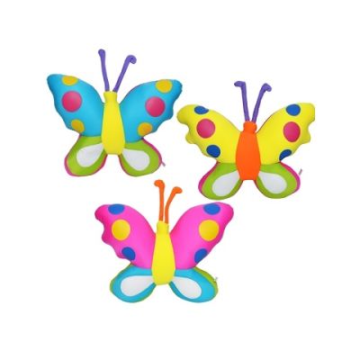 Fie ca mergi cu trenul avionul sau calatoresti cu masina o perna pentru copilasi este un accesoriu obligatoriu iar daca acesta este sub forma de fluturas cei mici se vor bucura de un timp distractiv. Caracteristici - Pernita este super simpatica avand forma de fluturas. - Jucaria este confectionata din material textil cu compozitie tip bilute din poliester fiind un produs sigur pentru cei mici. - Penita are elasticitate buna rezistenta la frecare si la tasare. - Aceasta este viu colorata si stimuleaza creativitatea. - Se poate folosi atat acasa cat si in calatoriile cu mijloacele de transport. - Recomandari de intretinere nu se spala la temperaturi mai mari de 30 grade nu se usca prin centrifugare nu se calca nu se curata chimic. - Jucaria este disponibila in combinatii de culori avand culoare predominanta aripi superioare albastru galben sau roz. Livrarea se face in functie de culoarea aleasa in comanda si disponibilitatea in stoc sau daca nu este specificata culoarea in comanda livrarea se face aleatoriu. - Ambalaj folie. Avertizare Produsul este nou si comercializat in ambalajul original al producatorului. Imaginile de pe acest site au caracter informativ. Ambalajul trebuie indepartat recuperat si aruncat de catre un adult inainte de a se da spre utilizare copilului. Nu lasati ambalajele produselor la indemana copiilor. Se recomanda utilizarea produsului sub supravegherea unui adult. Produsul poate contine piese mici care se pot inghiti sau inhala de cei mici existand pericolul de sufocare sau nu este potrivita copiilor mai mici de 3 ani. Pastrati instructiunile si etichetele pentru referinte viitoare. Pastrati produsul departe de foc si nu il lasati in preajma temperaturilor ridicate si a umiditatii. Datorita masurarii manuale a produsului poate exista o diferenta minora fata de dimensiunea reala a produsului.Specificatii