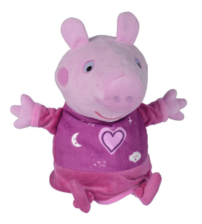Jucarie din plus din indragita serie Peppa Pig, cu sunete si lumini care va ajuta sa adormiti mai rapid bebelusii. Jucaria de plus Peppa Pig are o inaltime de 25 cm. Acesta jucarie de plus este fabricata dintr-un material de calitate, rezistent, si in conformitate cu cerintele de calitate.