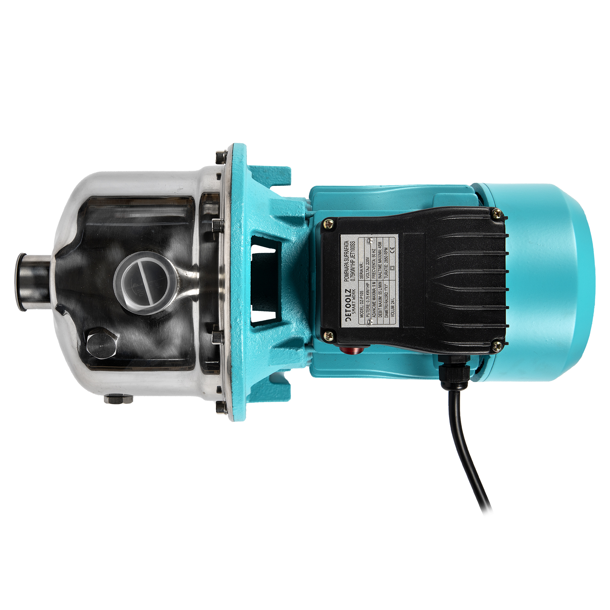 Pompa de apa autoamorsanta, JET100SS, Detoolz DZ-P105 este proiectata pentru pomparea apei curate si lichide non-corozive. Avantajele majore ale acestei pompe sunt fiabilitate, capul de descarcare mare, cap aspirare mare si timpul de auto-amorsare destul de scurt. Prin urmare,este utilizata pe scara larga pentru irigatii gradina, terenuri agricole, alimentare cu apa la cladiri inalte, pepiniere de flori, nave etc. Pompa apa de suprafata centrifugala autoamorsanta are o putere 0.75 kw. Turbina este din bronz rezistent la coroziune. Axul si corpul pompei sunt din inox.