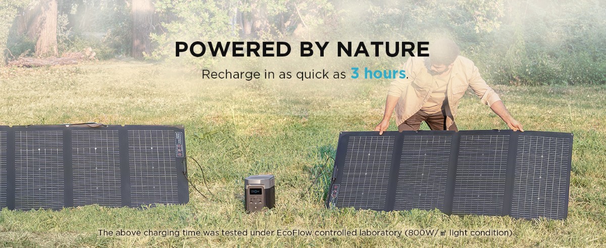 Cu o intrare de pana la 500W a panoului solar (se vinde seaparat), statia portabila EcoFlow Delta 2 este un generator solar care poate fi incarcat in timpul campingului, in timpul unei excursii cu rulota sau in afara retelei.