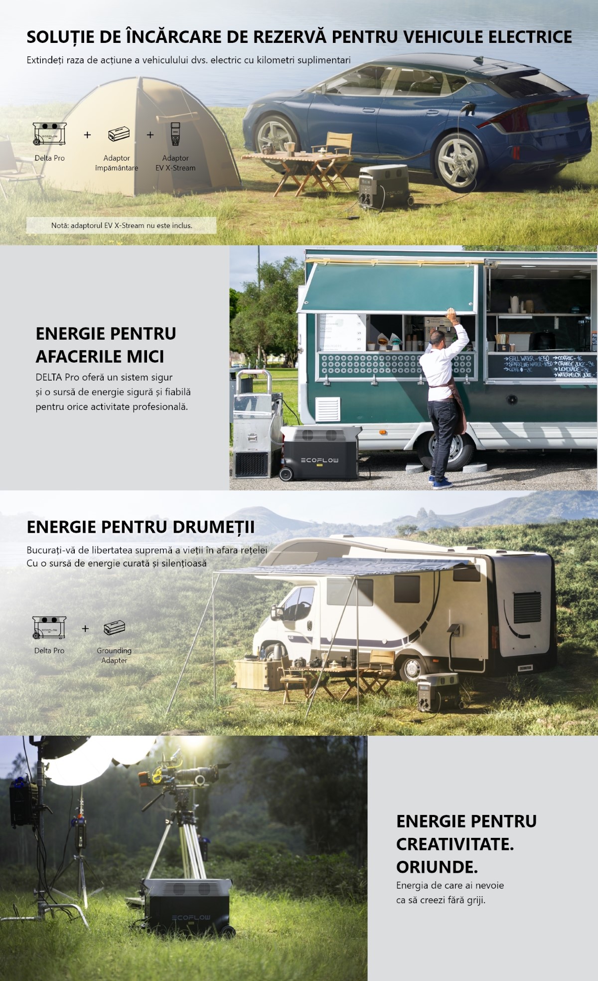 Ce contine pachetul: Statie alimentare portabila Delta Pro, cablu de incarcare AC, cablu de incarcare auto, manual de utilizare.