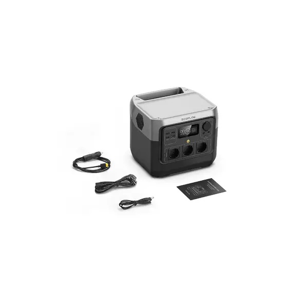Statie de alimentare portabila River 2 Pro, cablu de incarcare 220V AC, cablu de incarcare pentru masina, cablu de conectare DC5521, manual de utilizare si o garantie de 5 ani.