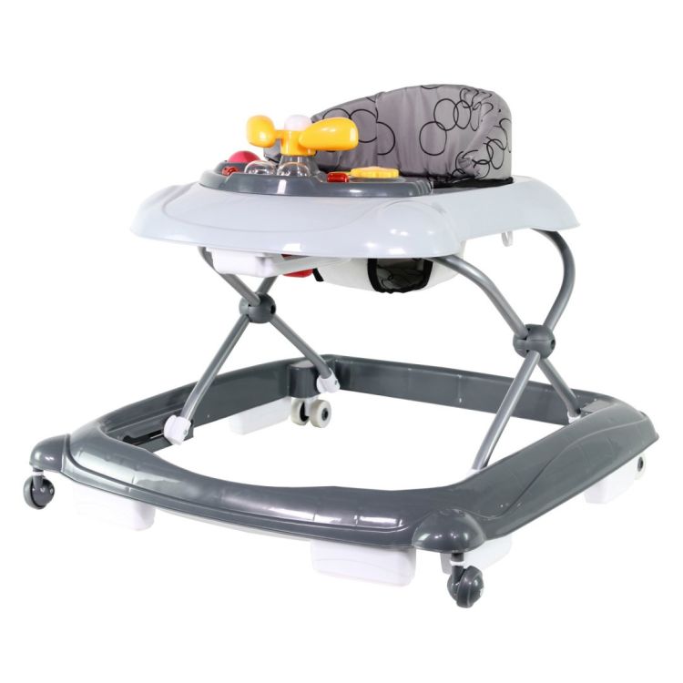Libertate si Siguranta pentru micii exploratori. Premergatorul Migo BASILE GREY este ideal inca de la momentul in care micutul tau manifesta dorinta de a sta in picioare si de a porni in aventuri in jurul casei Asezat confortabil pe o perna ultra-confortabila bebelusul tau face primii pasi si exploreaza lumea din jur. Aceast premergator poate fi utilizat incepand cu varsta de 8 luni si pana la 76 cm datorita reglajului sau pe 3 inaltimi. Tava sa de activitati detasabila ofera multiple activitati pentru copil pentru a se juca si a se odihni dupa toate aventurile lor Formele rotunjite ale premergatorului Migo BASILE GREY si culorile vesele il fac un dispozitiv excelent pentru invatarea mersului si descoperirea mediului inconjurator. Totusi utilizarea premergatorului Migo BASILE GREY necesita cateva precautii din partea dumneavoastra evitati scarile acordati atentie la ferestre si usi si protejati produsele potential periculoase care au devenit la indemana micutului tau. Astfel bebelusul va descoperi lumea din jur in siguranta. Viata de zi cu zi este agitata. Premergatorul Migo BASILE GREY se pliaza rapid si compact facilitand depozitarea si deplasarile. Ideal pentru familiile active premergatorul poate fi transportat cu usurinta ocupand foarte putin spatiu. Astfel copilul dumneavoastra va putea explora in siguranta si in afara casei. Aventurile bebelusului presupun uneori multa murdarire. Perna de sezut a premergatorului Migo BASILE GREY este detasabila si lavabila asigurand curatarea usoara dupa aventurile bebelusului. Ofera-i bebelusului tau libertatea de a descoperi lumea din jur cu premergatorul Migo BASILE GREY. Un companion de incredere pentru fiecare etapa de crestere. Alege Migo BASILE GREY pentru a insoti primii pasi ai micului tau explorator Caracteristici Tava de activitati Se pliaza rapid si compact pentru stocare si calatorii usoare Perna de sezut detasabila si lavabila 3 inaltimi reglabile Disponibila in 3 culori Varsta De la 8 luni pana la 76 cm Dimensiuni produs Lungime 61 cm Latime 61 cm Inaltime 54 cm Greutate 4 1 kg. Materiale plastic poliester aluminiu silicon. NOTA produsul nu este livrat cu baterii. Sunt necesare 2 baterii AA LR6Specificatii
