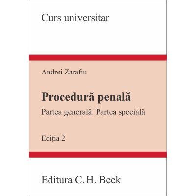 Lucrarea a fost conceputa ca un manual de procedura penala cu un continut alternativ si utilizand metode conjugate note de curs explicatii teoretice comentarii legislative si jurisprudentiale etc. . Indiferent ca sunt convergente sau ergente cu alte puncte de vedere exprimate pana in prezent aprecierile propunerile si solutiile autorului sunt prezentate intr-o maniera clara concisa si argumentata si cel mai important sunt asumate. De altfel nimic nu este mai periculos pentru nou sistem procesual aparent eliberat de constrangeri sau prejudecati doctrinare si jurisprudentiale decat un monopol al opiniilor. Editia 2 Noua editie s-a dovedit a fi necesara ca urmare a solutiilor jurisprudentiale pronuntate de inalta Curte de Casatie si Justitie hotarari preliminare pentru dezlegarea unor probleme de drept sau recursuri in interesul legii sau de Curtea Constitutionala precum si de jurisprudenta recenta a instantelor nationale in interpretarea si aplicarea noului Cod de procedura penala. Din cuprins explicatii teoretice comentarii privind procesul penal si legea penala participantii la procesul penal actiunile in procesul penal competenta in materie penala probele mijloacele de proba si procedeele probatorii masurile procesuale urmarirea penala camera preliminara judecata in prima instanta judecata in cai de atac si in cai de asigurare a unei practici judiciare unitare executarea hotararilor penale Puncte forte abordare generala a Dreptului procesual penal Partea generala si Partea speciala cuprinde solutiile jurisprudentiale ale instantelor nationale cat si deciziile pronuntate recent de inalta Curte de Casatie si Justitie in dezlegarea unor probleme de drept Decizia nr. 4 2015 Decizia nr. 9 2015 Decizia nr. 1 2015 Decizia nr. 5 2015 Decizia nr. 2 2015 cat si hotarari pronuntate in interesul legii Decizia nr. 17 2015 decizii ale Curtii Constitutionale Decizia nr. 663 2014 Decizia nr. 641 2014 Decizia nr. 506 2015 continut alternativ note de curs explicatii teoretice comentarii legislative si jurisprudentiale etc. explicare clara si concisa a informatiilor din sfera procesual penala bibliografia ampla indicata pe larg la sfarsitul cartii Andrei ZARAFIU este lector universitar Catedra de Drept Penal Facultatea de Drept Universitatea din Bucuresti si avocat in cadrul Baroului Bucuresti din 2001Specificatii