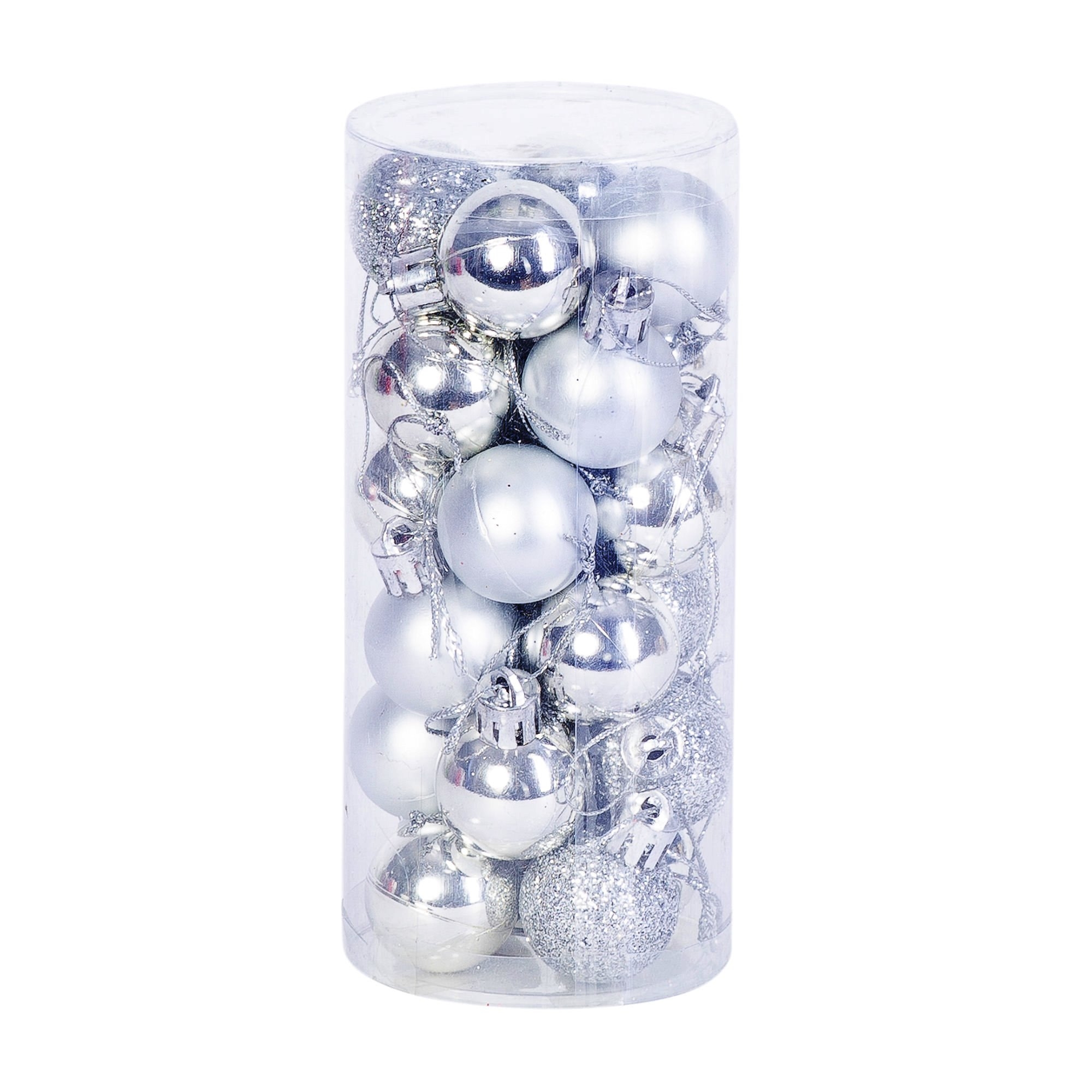 Prosper Set 24 Globulete alb metalic XMAS, diametru 3 cm, diferite modele