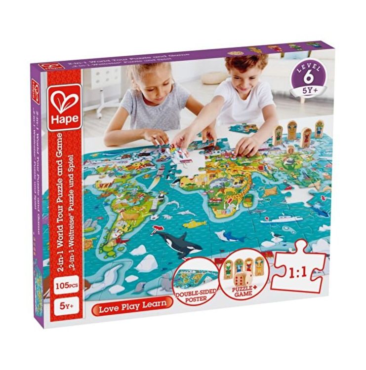 Puzzle 2 in 1 Turul lumii, 100 piese, HAPE