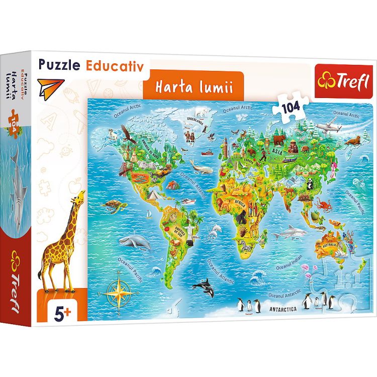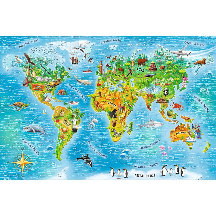 Puzzle-urile educationale „Harta Lumii - pentru copii” sunt o ocazie excelenta de a arata micilor exploratori cat de frumoasa este aceasta lume. Suprafetele colorate te ajuta sa inveti despre regiunile lumii. Dupa ce faci puzzle-urile, vei sti mult mai multe.