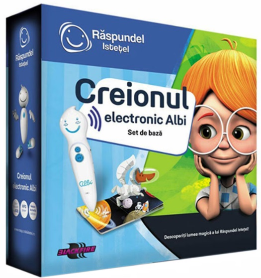 Contine: Creionul electronic Albi, manualul de utilizare pentru creionul electronic Albi, 10 autocolante pentru MP3, 10 autocolante pentru reglare volum, incarcator, cablu USB.