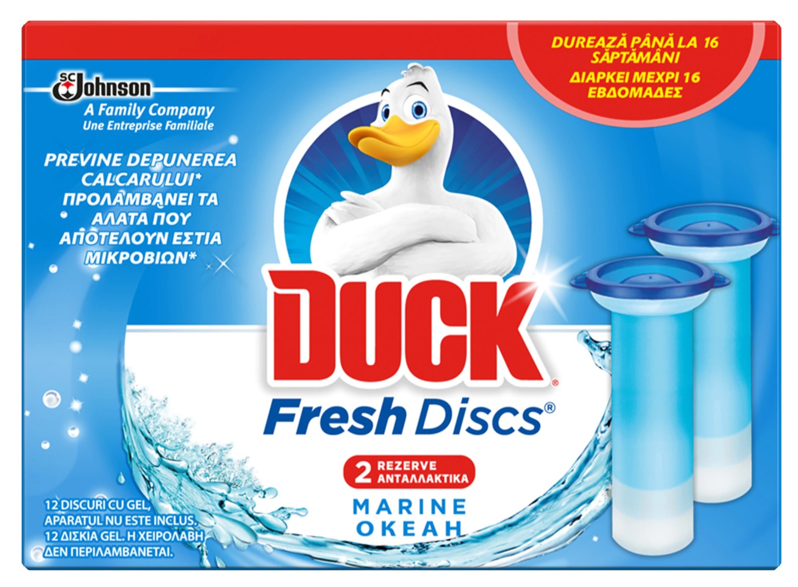 Rezerve odorizant gel pentru vasul toaletei,Fresh Discs Marine, 12 discuri, Duck