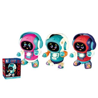 Robot interactiv care se deplaseaza emite sunete si lumini incurajeaza imaginatia si jocurile de rol. Caracteristici - robot interactiv care se deplaseaza inainte si inapoi iar atunci cand intalneste obstacole isi schimba directia - emite sunete si lumini - robotul functioneaza cu 3 baterii AA 1 5V neincluse - inaltime robot 16 cm Avertizare Aceasta jucarie contine piese mici. In cazul putin probabil al inghitirii unor astfel de piese consultati de urgenta un specialist. Produsul este nou si comercializat in ambalajul original al producatorului. Imaginile de pe site au caracter informativ. Ambalajul trebuie indepartat recuperat si aruncat de catre un adult inainte de a se da spre utilizare copilului. Nu lasati ambalajele produselor la indemana copiilor. Se recomanda utilizarea produsului sub supravegherea unui adult. Produsul poate contine piese mici care se pot inghiti sau inhala de cei mici existand pericolul de sufocare sau nu este potrivita copiilor mai mici de 3 ani. Pastrati instructiunile si etichetele pentru referinte viitoare. Pastrati produsul departe de foc si nu il lasati in preajma temperaturilor ridicate si a umiditatii. Nerecomandat copiilor cu varsta mai mica de 3 aniSpecificatii