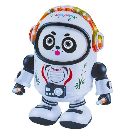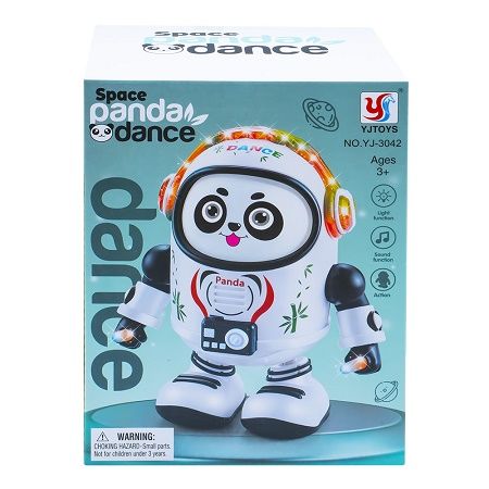 Robotul Panda dansator este o jucarie muzicala si luminoasa atractiva cadoul perfect pentru copii. Caracteristici - In timpul functionarii robotul danseaza se deplaseaza stanga-dreapta si emite lumini colorate intermitente si muzica. - Robotul Panda este imbracat in costum de astronaut. - Prin mutarea comutatorului pe prima treapta se aprind luminile colorate intermitente din castile de pe cap si din cele 2 baghete din maini iar pe a doua treapta robotul danseaza in ritmul muzicii corpul se ridica-cpboara bratele se misca si picioarele se deplaseaza stanga-dreapta. - Robotul muzical este alimentat de 3 baterii tip AA R6 de 1 5V neincluse in pachet. Bateriile se introduc in pozitia corecta respectandu-se polaritatea. Compartimentul bateriilor trebuie sa fie curat. Bateriile epuizate se schimba si se recicleaza conform normelor in vigoare. In cazul neutilizarii jucariei pentru mai mult timp se scot bateriile pana in momentul refolosirii. - Jucaria contribuie la stimularea perceptiei vizuale si auditive a coordonarii mana-ochi si la intelegerea principiului cauza-efect. - Robotul este confectionat din material plastic de inalta calitate este usor si durabil. - Produsul este ambalat in cutie din carton. Dimensiune robot 14x11x18 cm Avertizare Produsul este nou si comercializat in ambalajul original al producatorului. Imaginile de pe site au caracter informativ. Ambalajul trebuie indepartat recuperat si aruncat de catre un adult inainte de a se da spre utilizare copilului. Nu lasati ambalajele produselor la indemana copiilor. Se recomanda utilizarea produsului sub supravegherea unui adult. Produsul poate contine piese mici care se pot inghiti sau inhala de cei mici existand pericolul de sufocare sau nu este potrivita copiilor mai mici de 3 ani. Pastrati instructiunile si etichetele pentru referinte viitoare. Pastrati produsul departe de foc si nu il lasati in preajma temperaturilor ridicate si a umiditatii. Datorita masurarii manuale a produsului poate exista o diferenta minora fata de dimensiunea reala a produsului.Specificatii