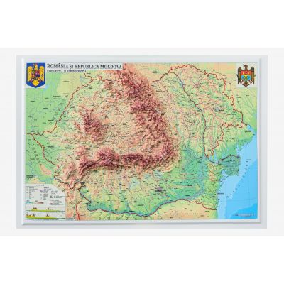 Romania si Republica Moldova. Harta fizica si administrativa - proiectie 3D, 450x330mm (3DGHRF430)