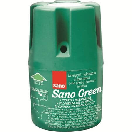 Detergentul solid Sano Green este un odorizant si igienizant pentru bazinul toaletei. Acest produs curata si dezinfecteaza cu eficacitate sporita atunci cand este asezat corespunzator in bazinul de apa al toaletei.
