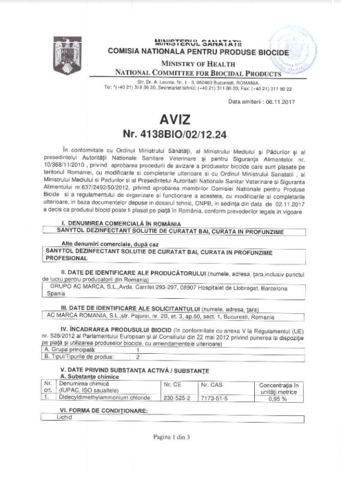 Sanytol Virucid Dezinfectant baie 500 ml, avizat Ministerul Sanatatii