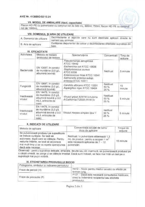 TP2: Produse utilizate pentru dezinfectarea suprafețelor, materialelor, echipamentelor și mobilierului și care nu sunt utilizate în contact direct cu produsele alimentare sau cu hrana pentru animale. Sunt în special destinate piscinelor, acvariilor, apelor de bazin sau altor ape; sistemelor de climatizare; și pereților și podelelor din amplasamente private, publice și industriale și din alte amplasamente destinate activităților profesionale.