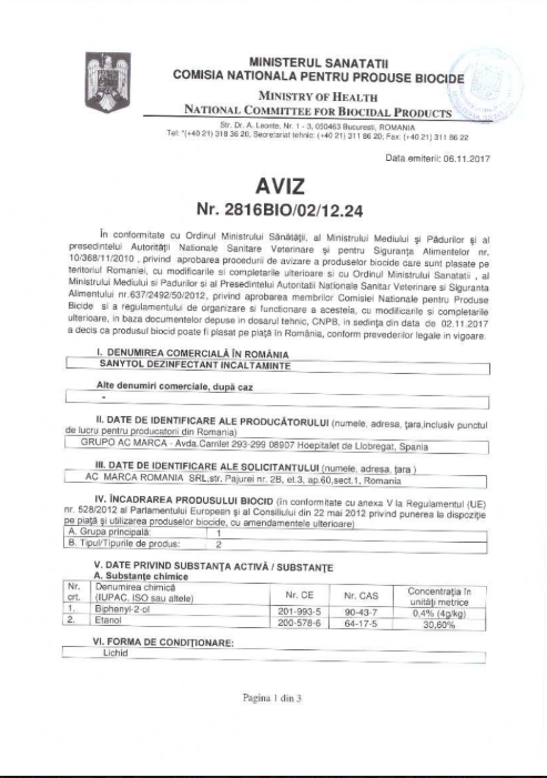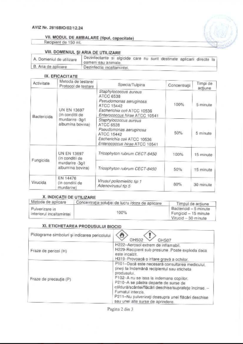 TP2: Produse utilizate pentru dezinfectarea suprafețelor, materialelor, echipamentelor și mobilierului și care nu sunt utilizate în contact direct cu produsele alimentare sau cu hrana pentru animale. Sunt în special destinate piscinelor, acvariilor, apelor de bazin sau altor ape; sistemelor de climatizare; și pereților și podelelor din amplasamente private, publice și industriale și din alte amplasamente destinate activităților profesionale.