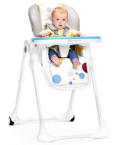 Scaunul de masa pliabil YUMMY MULTICOLOR a fost proiectat cu gandul la copiii care incep aventura unei diete ersificate. Datorita reglarii spatarului in 3 trepte este potrivit inca din primele luni de viata - atunci cand copilul tau incepe sa stea in sezut poti trece la o dieta ersificata Scaunul se potriveste fiecarei mese datorita reglarii inaltimii pe 7 niveluri. Este usor de pliat iar posibilitatea de a atasa tava de picioare face sa scaunul sa ocupe mai putin spatiu. Suportul pentru picioare reglabil se ajusteaza usor in functie de inaltimea copilului pentru ca acesta sa aiba o postura corecta in timpul mesei. In plus tava reglabila cu prindere in 3 puncte permite ajustarea distantei fata de copil. Tava are un blat detasabil care se poate spala in intregime. Pe tava se afla o adancitura pentru cana sau sticle cu apa - copilul are mai putine sanse sa verse lichide atunci cand studiaza lumea din jur. Siguranta e asigurata de centurile in 5 puncte reglabile. Spatar reglabil in 3 trepte YUMMY MULTICOLOR are un spatar pe care il reglezi cu usurinta pe unul dintre cele 3 niveluri. Micutii care abia isi incep aventurile cu hrana solida obosesc rapid dar cu ajutorul lui YUMMY MULTICOLOR se pot odihni in pozitia semi-culcata. Copilul tau va putea de asemenea sa se joace pe scaun mai ales in timpul primelor incercari de a manca de exemplu prin metoda BLW. Adaptat copiilor Acesta un scaun de masa proiectat cu gandul la copii. In afara spatarului YUMMY MULTICOLOR are de asemenea si un suport pentru picioare reglabil care ii asigura celui mic o postura comoda si corecta in timpul meselor si jocului. In plus poti regla tava la una dintre cele 3 distante fata de scaun disponibile pentru a-i asigura copilului un confort sporit. Scaun de masa pliabil Pe YUMMY MULTICOLOR il pliezi in numai 5 secunde aproape intr-o forma plata datorita posibilitatii de a atasa tava la picioarele din spate ale scaunului . Atunci cand nu veti folosi scaunul acesta nu va ocupa spatiu in bucatarie sau sufragerie. YUMMY MULTICOLOR are roti din cauciuc care fac mai usoara apropierea de masa precum si un maner de transport pe spatar. Potrivit pentru orice masa Scaunul de masa YUMMY MULTICOLOR va permite sa mancati impreuna la masa. Datorit reglarii inaltimii pe 7 niveluri il vei potrivi pe YUMMY MULTICOLOR la inaltimea mesei tale. Cu ajutorul acestui scaun veti putea lua masa impreuna inca de la primele incercari ale copilului de a invata sa manance Mereu gata de masa YUMMY MULTICOLOR este mereu pregatit pentru provocari. Are o tava reglabila cu blat detasabil pe care il poti spala sub jetul de apa. si gata - e pregatit de masa. Poti detasa tava complet pentru a o prinde de picioarele din spate. Comod si sigur Scaunul de masa YUMMY MULTICOLOR are un sezut moale si comod precum si o husa din piele ecologica. Este nu doar comod ci si usor de curatat. Siguranta este asigurata de centurile in 5 puncte reglabile dotate cu protectii moi. Fabricatie Materiale Cadru otel Husa piele ecologica Roti cauciuc Dimensiuni 84 5 x 55 5 x 105 cm Greutate 8 4 kgSpecificatii