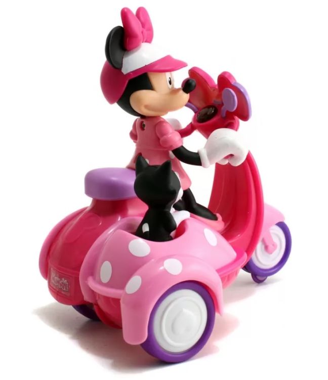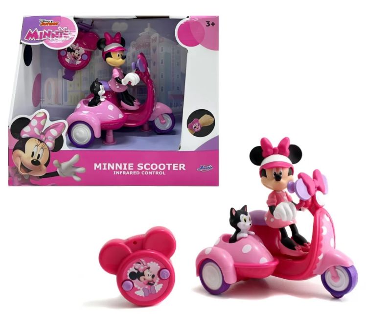 Scooter cu functie infra rosu Minnie Roadster 1-canal de transmisie cu 2 directii de deplasare inainte si inapoi curbat viteza maxima 2. 5 km h lungime 19 cm. Ii distreaza pe micuti ore intregi. Fabricat din material de calitate superioara pentru o durabilitate sporita. Baterii necesare 5Specificatii