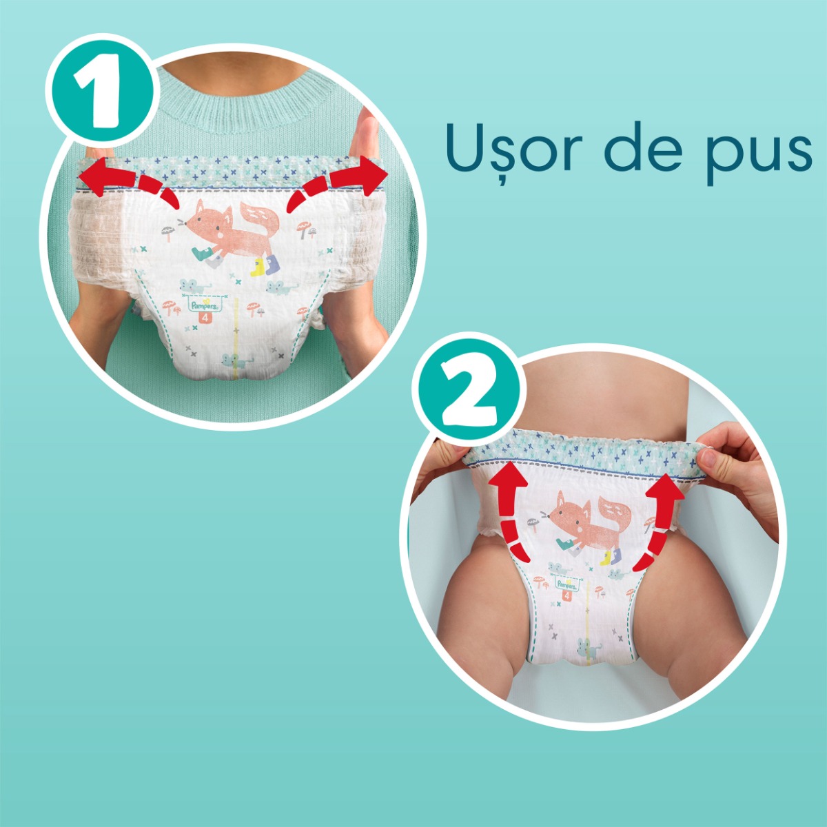 Pe masura ce bebelusul tau devine mai activ, vei avea nevoie de un scutec care sa ofere fixare confortabila si protectie sigura, pentru ca bebelusul sa poata tine pasul cu orice miscare. De aceea, scutecele-chilotel Pampers Premium Care ofera cel mai bun confort si cea mai mare protectie, cu fixare confortabila de jur imprejur datorita materialelor ultra moi si elastice care se adapteaza la forma bebelusului tau.