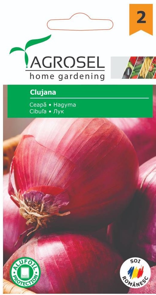Semintele de ceapa rosie Clujana AGROSEL Home Gardening sunt un soi semitardiv, cu bulbi de forma ovala si foliaj exterior mov inchis. Au un gust usor picant, fiind recomandate pentru salate. Acest soi este romanesc si poate fi semanat in camp in luna martie, cu o recoltare prevazuta pentru perioada august-septembrie. Sunt ambalate intr-un plic si fac parte din brandul Agrosel-PG2.