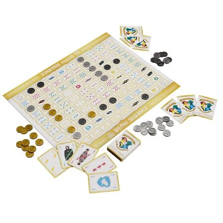 Clasicul joc distractiv un bestseller de peste 35 de ani acum cu o tema magica din universul lui Harry Potter. Joaca o carte si plaseaza un jeton pe campul corespunzator de pe tabla de joc. E atat de simplu Blocheaza-ti oponentii scoate-le jetoanele si atentie la valeti caci unii-s buni altii-s rai Aseaza 5 jetoane in linie ca sa obtii SECVENTA castigatoare Continut 1 tabla de joc 104 carti de joc 135 de jetoane 50 negre 50 aurii 35 argintii regulament in limba romana.Specificatii